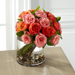 Blooming with grace and style, this stunning rose bouquet is set to send warm wishes to your recipient in way that will lift their spirits and have them delight in the unexpected. Salmon roses and coral roses combine to create a bright blushing display, accented with lush greens and hand-tied to provide a rounded and full form. Casually placed in a large clear glass cylinder vase with river rocks at the bottom to create even further interest, this fresh floral arrangement will be an unforgettable birthday, thank you, or Mother's Day gift. GOOD bouquet includes 12 stems. Approx. 8"H x 8"W. BETTER bouquet includes 16 stems. Approx. 9"H x 8"W. BEST bouquet includes 20 stems. Approx. 11"H x 8"W.