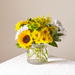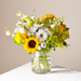 Give a dose of sunshine in bloom. This stunning bouquet is teeming with rays of sunflowers, textured snapdragons and darling daisy poms to deliver the perfect pick-me-up for an occasion or as a treat to yourself.