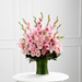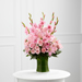 The FTD® Lovely Tribute™ Bouquet is a warm and blushing display of peace and beauty, set to honor the deceased and bring comfort to family and friends. Pink gladiolus, pale pink roses, bi-color pink roses, pink Asiatic lilies and an assortment of lush greens create a sophisticated arrangement seated in a clear glass gathering vase, symbolizing your heartfelt love and sympathy.