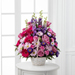 The FTD® Pastel Peace™ Basket is a sweet and simple way to offer your condolences. Lavender roses, fuchsia gerbera daisies, lavender daisies, purple larkspur, purple matsumoto asters, pink mini carnations and lush greens are arranged to perfection in a round whitewash handled basket to create a gift that expresses your wishes for sympathy and peace.