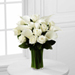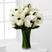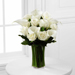 The FTD® Sweet Solace™ Bouquet is a divinely elegant arrangement that encourages peace and offers your sympathy. Brilliant white roses and calla lilies are simply set amongst lush greens in a clear glass gathering vase to create a meaningful gift that will help your special recipient through this trying time of grief and loss.
